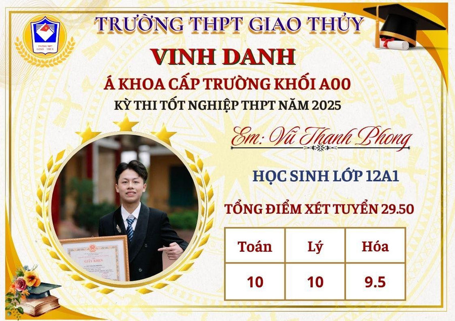 “Những kết quả trên không chỉ là thành tích cá nhân xuất sắc mà còn là minh chứng cho sự đồng hành tận tụy từ các thầy cô, sự chăm lo từ phụ huynh, và tinh thần nỗ lực không ngừng nghỉ của các em học sinh để viết tiếp những trang vàng thành tích của nhà trường” – Hiệu trưởng Trường THPT Giao Thủy Lê Thanh Giang nhấn mạnh.