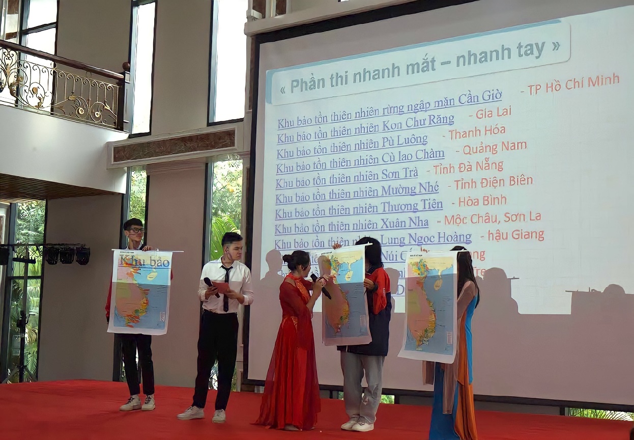 Khép lại cuộc thi là phần thi Nhanh tay nhanh mắt, học sinh có 90 giây để ghép tên 12 khu bảo tồn thiên nhiên lên bản đồ địa lý Việt Nam.