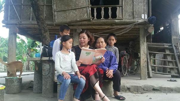 Ngoài giờ học trên lớp, cô còn tranh thủ đến tận gia đình thăm các em học sinh và hướng dẫn các em học bài.