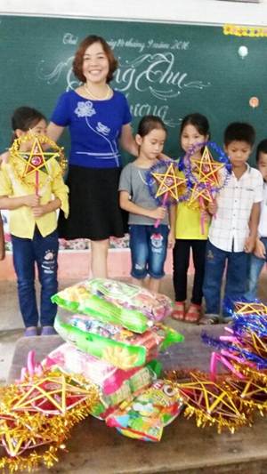 Phối hợp với các cô giáo dạy tại điểm trường, cô tổ chức Tết Trung thu cho tất cả học sinh tại điểm trường Quảng Mào với các hoạt động văn hóa, văn nghệ và tổ chức phát quà cho các em học sinh.