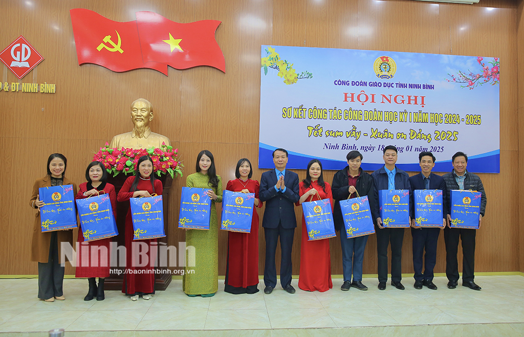 Tại hội nghị, nhiều tập thể, cá nhân có thành tích xuất sắc đã được nhận Bằng khen, giấy khen của LĐLĐ Việt Nam, LĐLĐ tỉnh, CĐGD tỉnh trong phong trào thi đua năm học 2023-2024; công nhận danh hiệu “Cơ quan, đơn vị, doanh nghiệp đạt chuẩn văn hóa” giai đoạn 2 năm (2023-2024) và giai đoạn 5 năm (2020-2024); khen thưởng tác giả (nhóm tác giả), thầy cô có thành tích trong cuộc thi “Thầy cô trong mắt em” năm học 2024-2025. Đồng thời, trao quà Tết cho giáo viên, học sinh nhân dịp Tết Nguyên đán Ất Tỵ 2025.