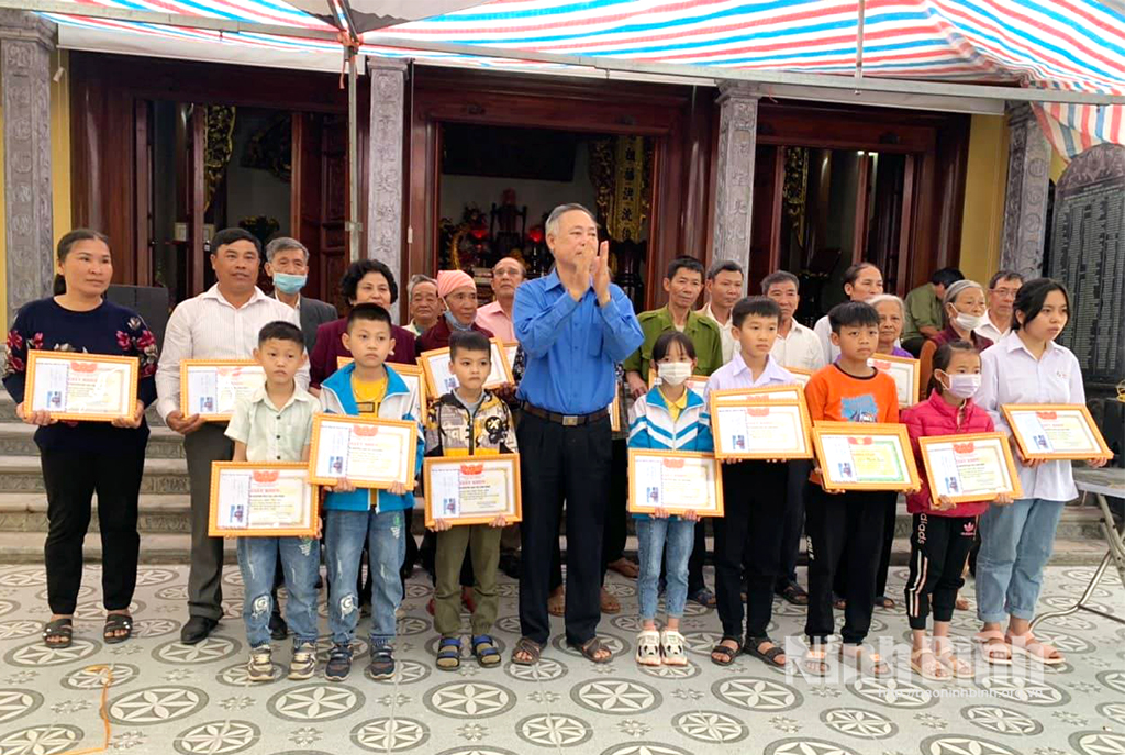 Dòng họ Lâm Đình (xã Gia Tân, huyện Gia Viễn) trao thưởng cho con cháu trong dòng họ đạt thành tích cao trong học tập. Ảnh: Đào Hằng