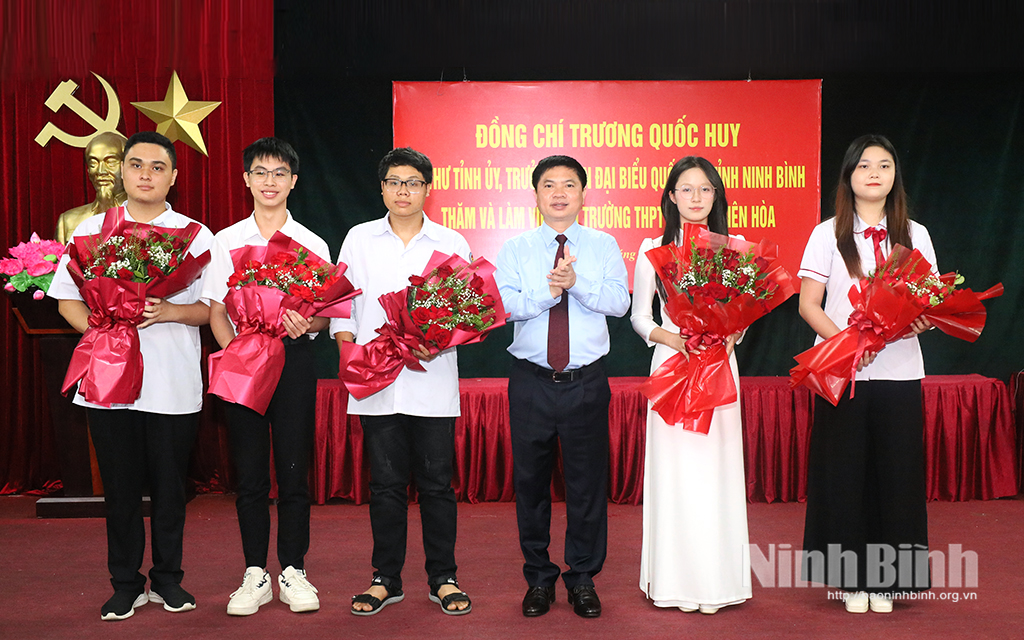 Chiều 3/9, đồng chí Trương Quốc Huy, Bí thư Tỉnh ủy, Trưởng Đoàn đại biểu Quốc hội tỉnh đã có buổi làm việc với Trường THPT chuyên Lê Hồng Phong. Cùng dự buổi làm việc có các đồng chí: Trần Minh Thắng, Ủy viên Ban Thường vụ Tỉnh uỷ, Bí thư Đảng ủy, Chủ tịch HĐND phường Nam Định; Hà Lan Anh, Tỉnh ủy viên, Phó Chủ tịch UBND tỉnh; Nguyễn Tiến Dũng, Tỉnh uỷ viên, Giám đốc Sở Giáo dục và Đào tạo…
