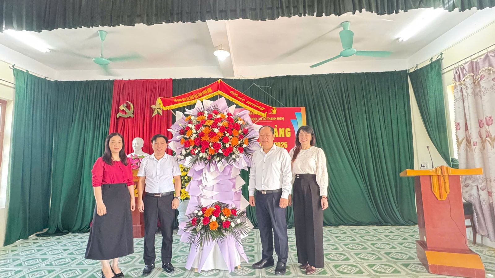 Trước thềm năm học mới, đồng chí Đinh Văn Khâm, Phó Giám đốc Sở Giáo dục và Đào tạo đã ghi nhận, biểu dương những kết quả, thành tích, tiến bộ vượt bậc của thầy và trò nhà trường trong những năm học vừa qua, trong điều kiện nhà trường còn nhiều khó khăn về cơ sở vật chất và có lẵng hoa chúc mừng nhà trường một năm học mới trên cơ sở kế thừa các thành tích đã đạt được, khắc phục các khó khăn, thách thức để hoàn thành xuất sắc các nhiệm vụ năm học 2025-2026.