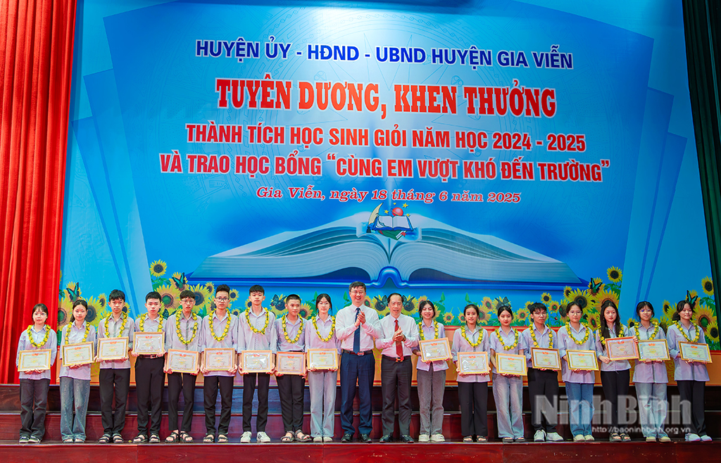 Ngày 18/6, UBND huyện Gia Viễn đã tổ chức chương trình tuyên dương, khen thưởng thành tích học sinh giỏi năm học 2024-2025, vận động viên có thành tích xuất sắc tại giải thể thao học sinh phổ thông và trao học bổng “Cùng em vượt khó đến trường”.