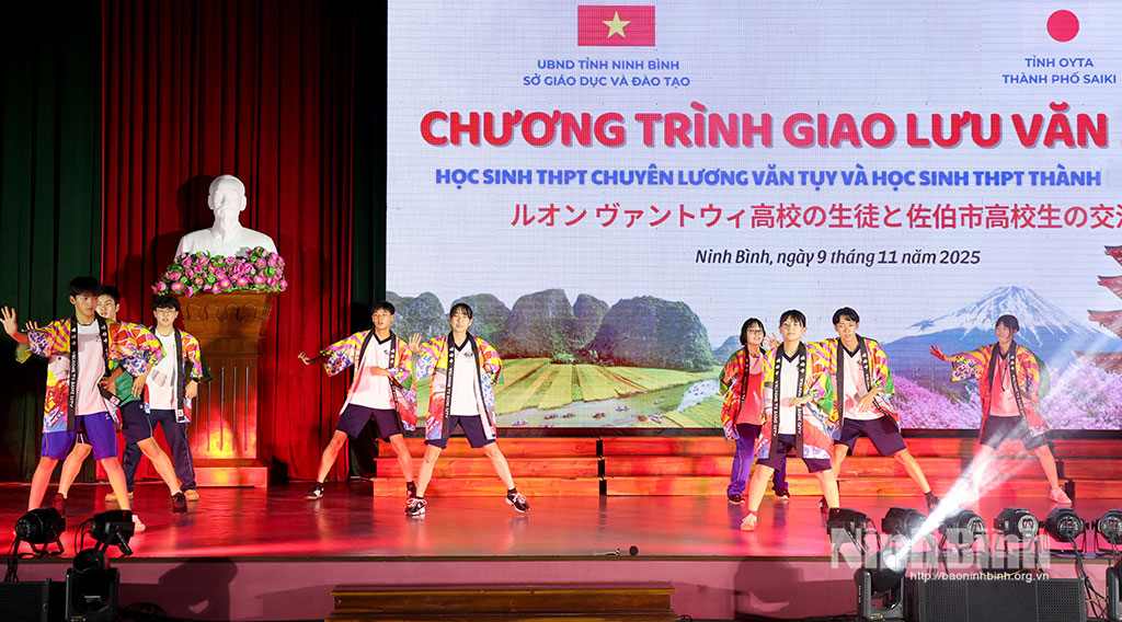 Tối 9/11, tại Nhà đa năng Trường THPT chuyên Lương Văn Tụy (phường Hoa Lư), Sở Giáo dục và Đào tạo tổ chức chương trình giao lưu văn hóa giữa học sinh Trường THPT chuyên Lương Văn Tụy, tỉnh Ninh Bình và học sinh THPT thành phố Saiki, Nhật Bản.