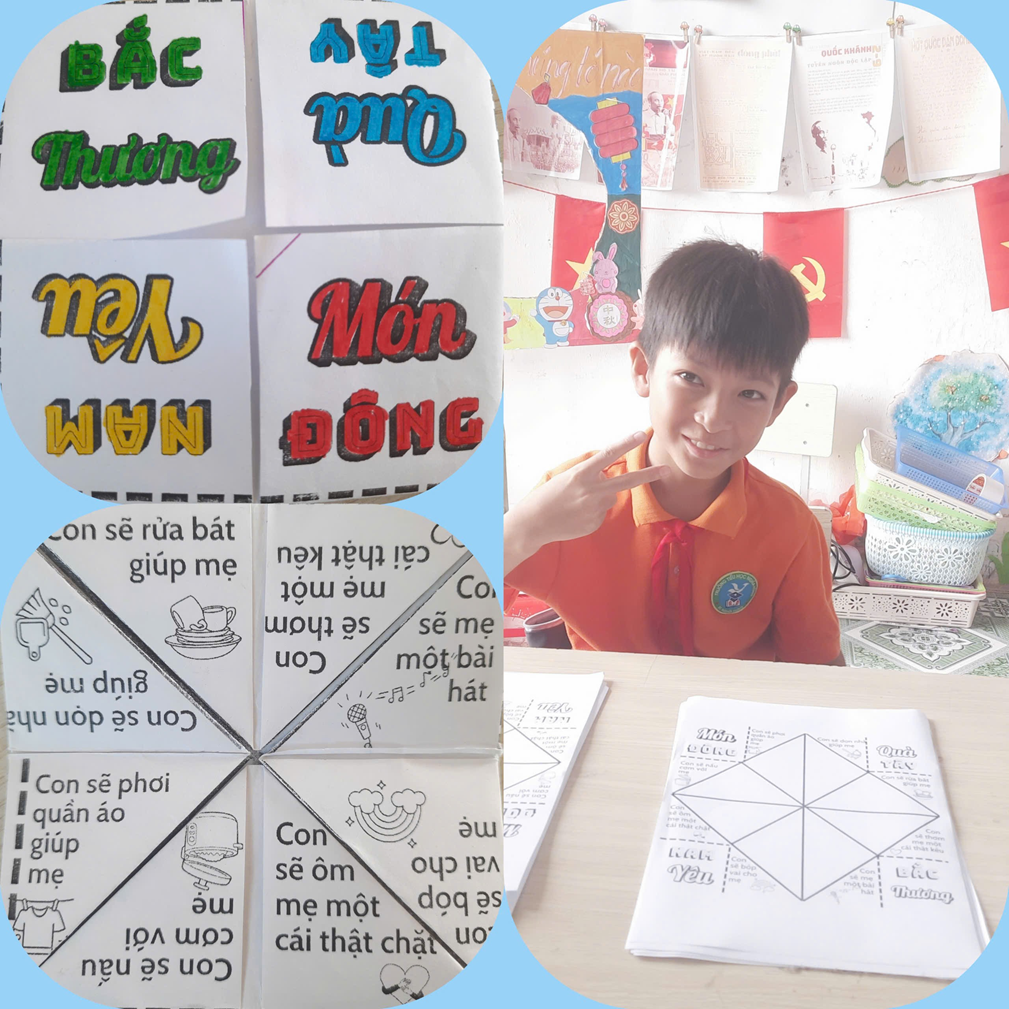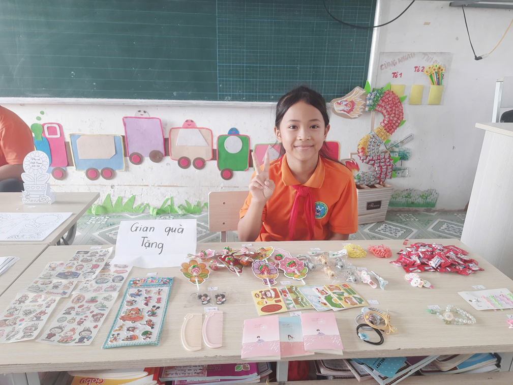 Chắc chắn, hoạt động “Hội chợ yêu thương” này sẽ là một trải nghiệm vô cùng ý nghĩa và đáng nhớ đối với mỗi học sinh lớp 5A. Thông qua việc tự tay chọn mua thiệp, quà và gửi tặng mẹ bằng chính những sticker mình tích góp được, các em không chỉ cảm nhận được niềm vui của sự sẻ chia mà còn học được cách trân trọng công sức, quý trọng tình yêu thương. Mỗi món quà tuy nhỏ bé, nhưng chứa đựng trong đó là tấm lòng biết ơn chân thành và sự trưởng thành trong suy nghĩ. Hội chợ cũng giúp các em rèn luyện nhiều kĩ năng bổ ích như tính toán, giao tiếp, hợp tác và sáng tạo. Hơn hết, hoạt động này đã gieo vào lòng các em hạt giống của lòng hiếu thảo và yêu thương, để các em biết sống nhân ái, biết bày tỏ tình cảm với những người thân yêu xung quanh mình.