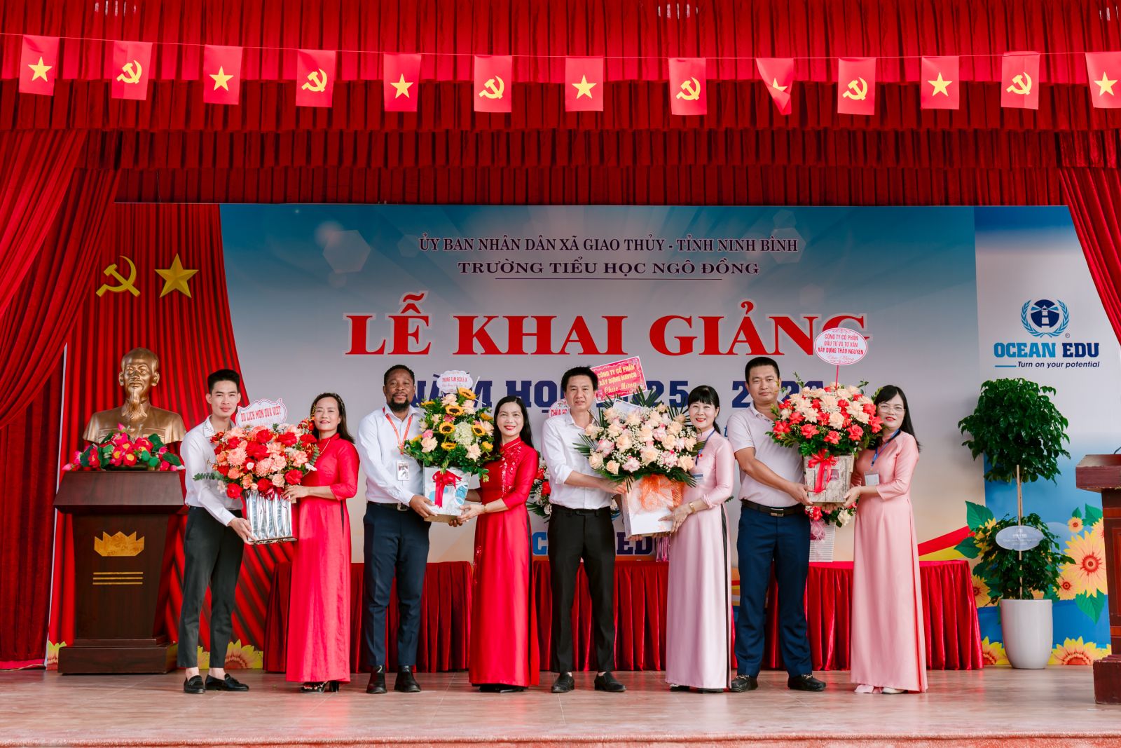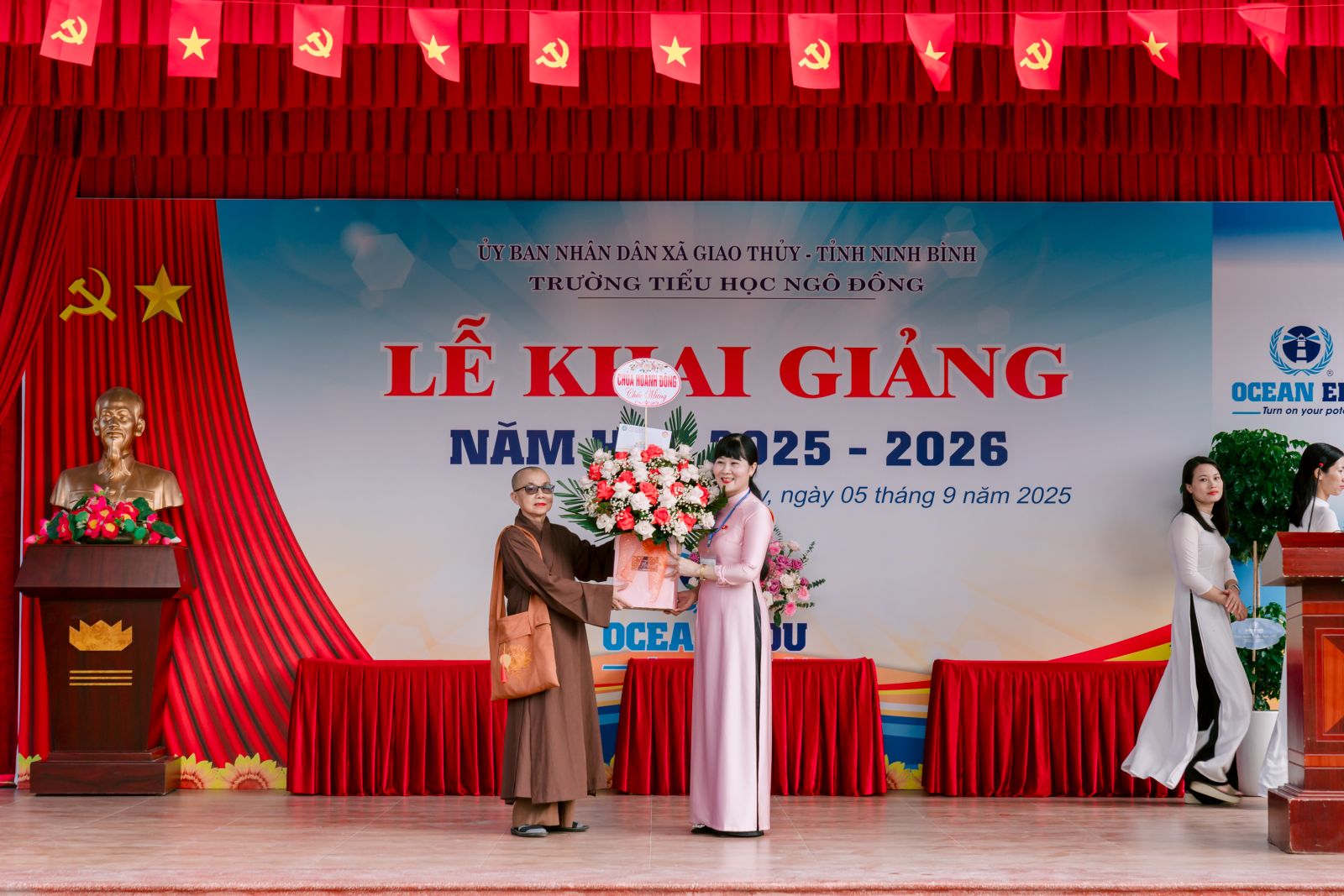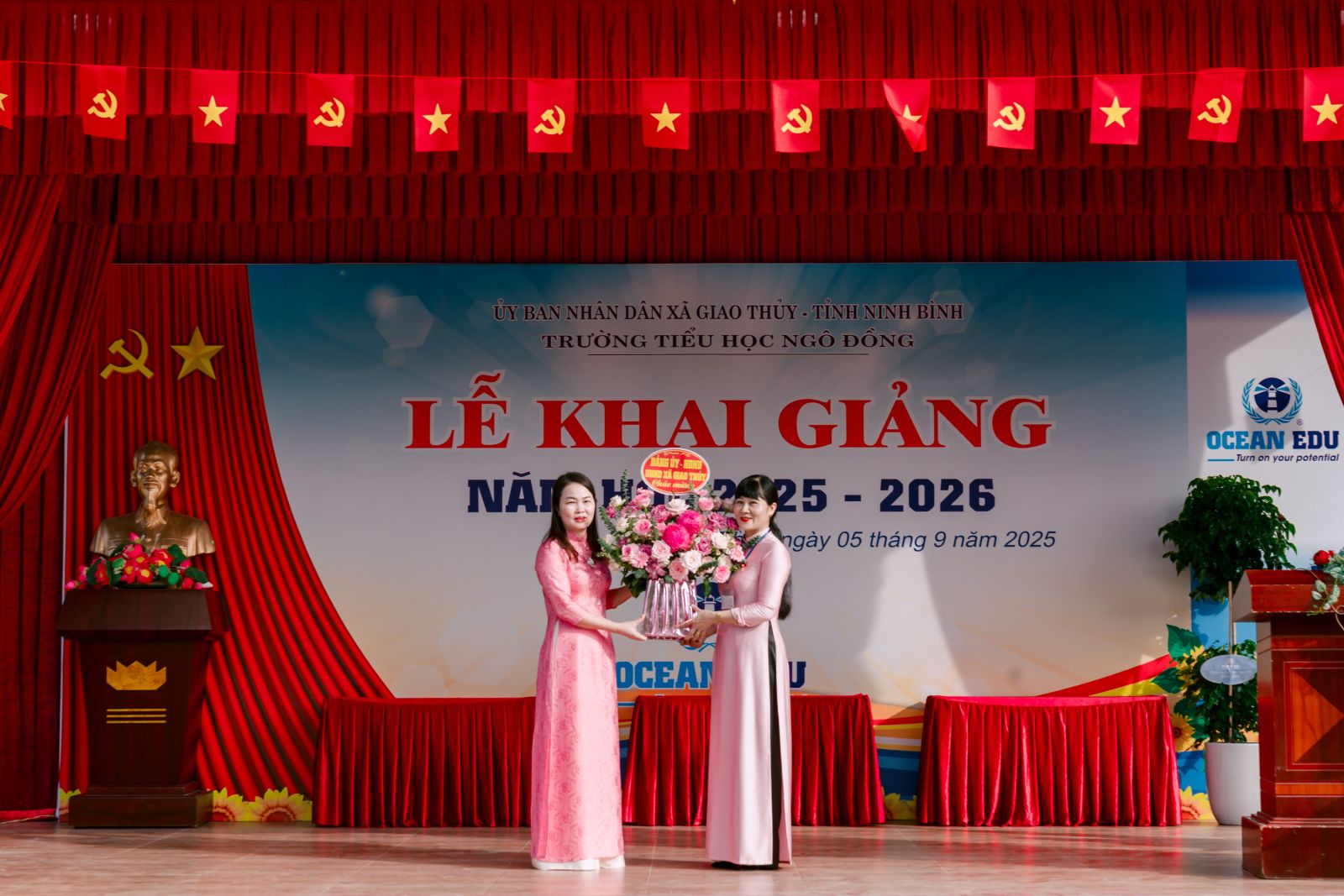 Nhân dịp Lễ khai giảng năm học mới, nhà trương đón nhận những lẵng hoa tươi thắm từ đồng chí Vũ Thị Tuyết Minh – Phó Bí thư Thường trực Đảng uỷ xã, trụ trì chùa Hoành Đông, các doanh nghiệp, cơ sở liên kết giáo dục cùng các bậc phụ huynh./.