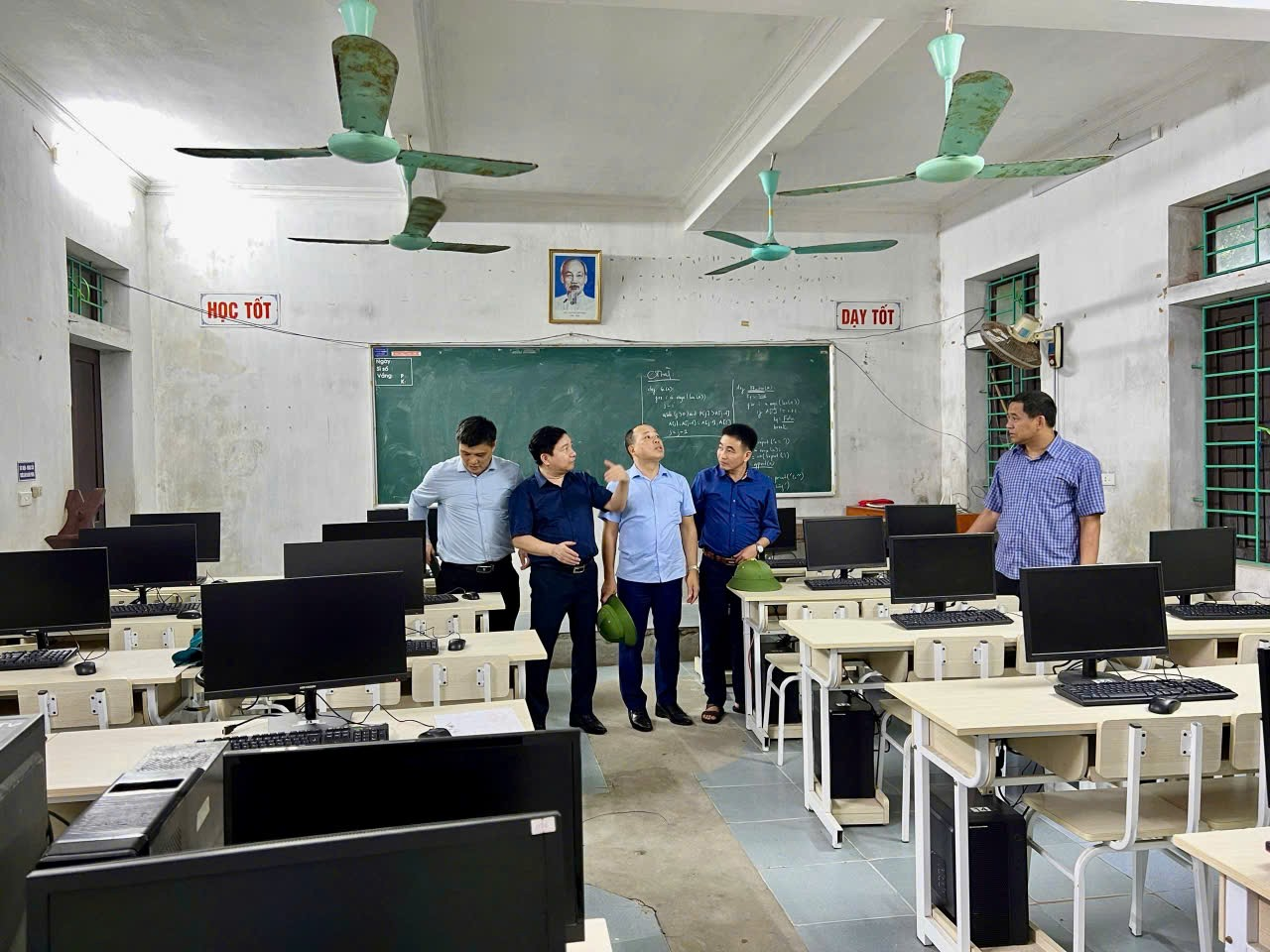 Ảnh: Đoàn công tác của Sở GDĐT do đồng chí Bùi Văn Khiết, Phó Giám đốc Sở Trưởng Đoàn kiểm tra tại Trường THCS Khánh Nhạc, xã Khánh Nhạc