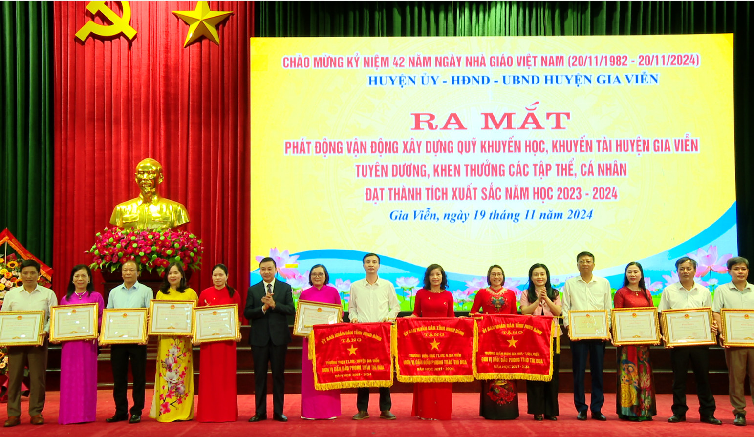Huyện Gia Viễn vừa tổ chức Chương trình ra mắt, phát động, vận động xây dựng Quỹ Khuyến học, Khuyến tài (KHKT) huyện và tuyên dương, khen thưởng năm học 2023-2024.