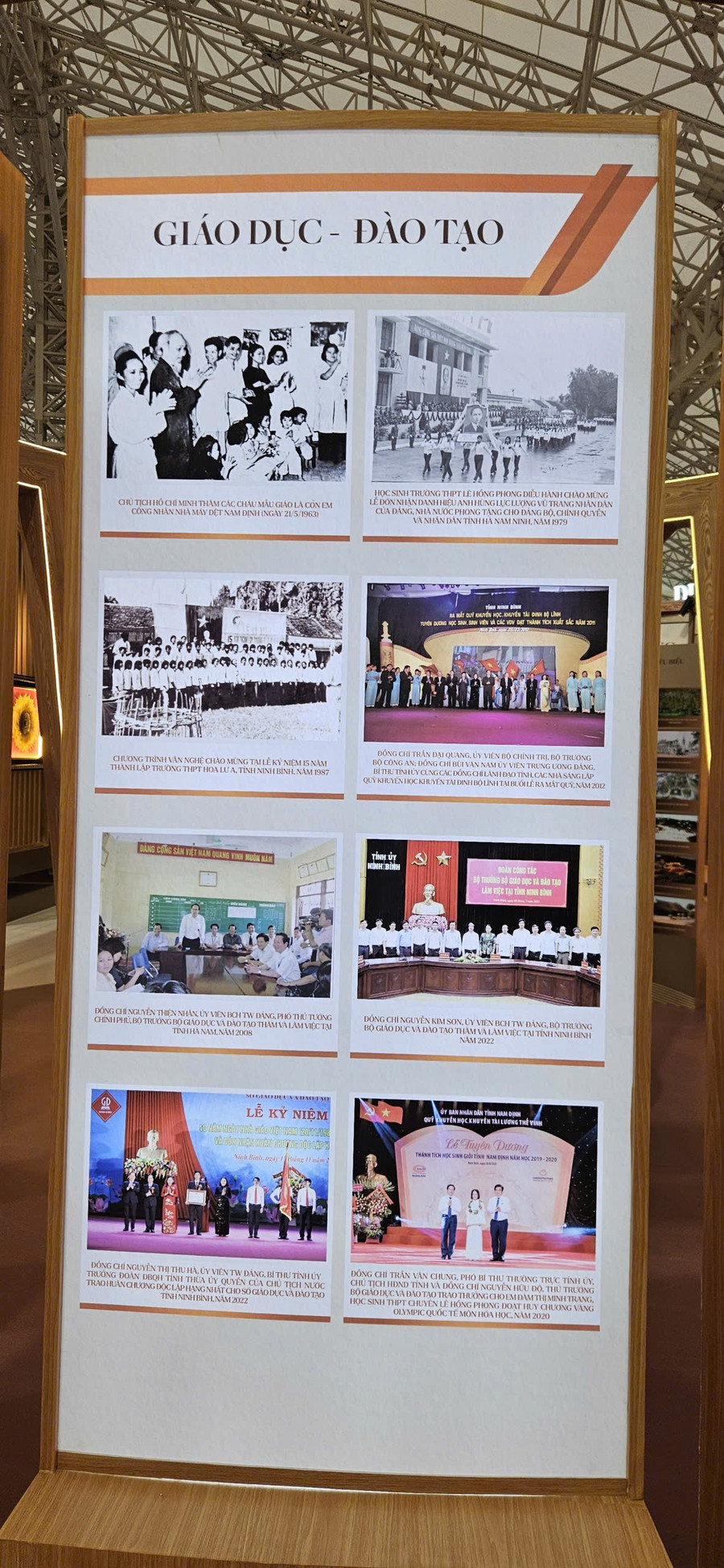 Gian trưng bày của tỉnh Ninh Bình (sảnh 6) trong nhà Triển lãm có diện tích 645m2 trưng bày hình ảnh, sơ đồ, biểu đồ, hiện vật nhằm giới thiệu khái quát những thành tựu về lĩnh vực chính trị, kinh tế, văn hóa, xã hội, quốc phòng, an ninh của tỉnh qua các thời kỳ, nhất là trong thời kỳ đổi mới và hội nhập; tuyên truyền, quảng bá tiềm năng, thế mạnh và chiến lược phát triển đến năm 2030, tầm nhìn 2045 của tỉnh Ninh Bình.