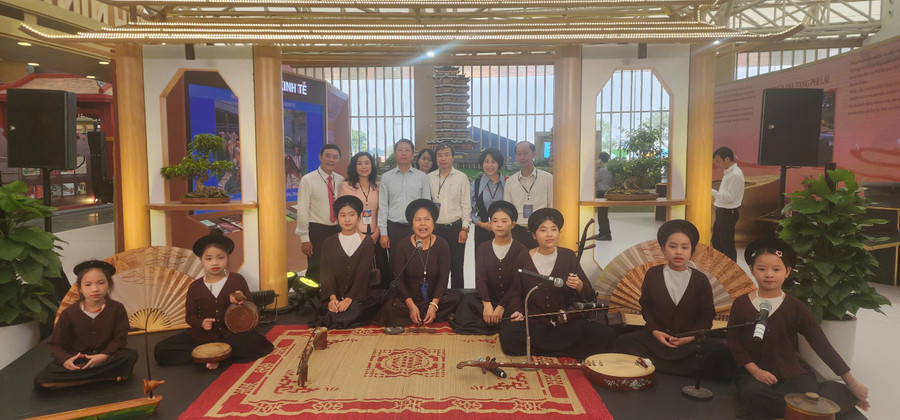 Các nghệ nhân đến từ CLB Hát Xẩm Hà Thị Cầu do gia đình của cố Nghệ nhân tiếp nối. Ảnh: Thu Hường.