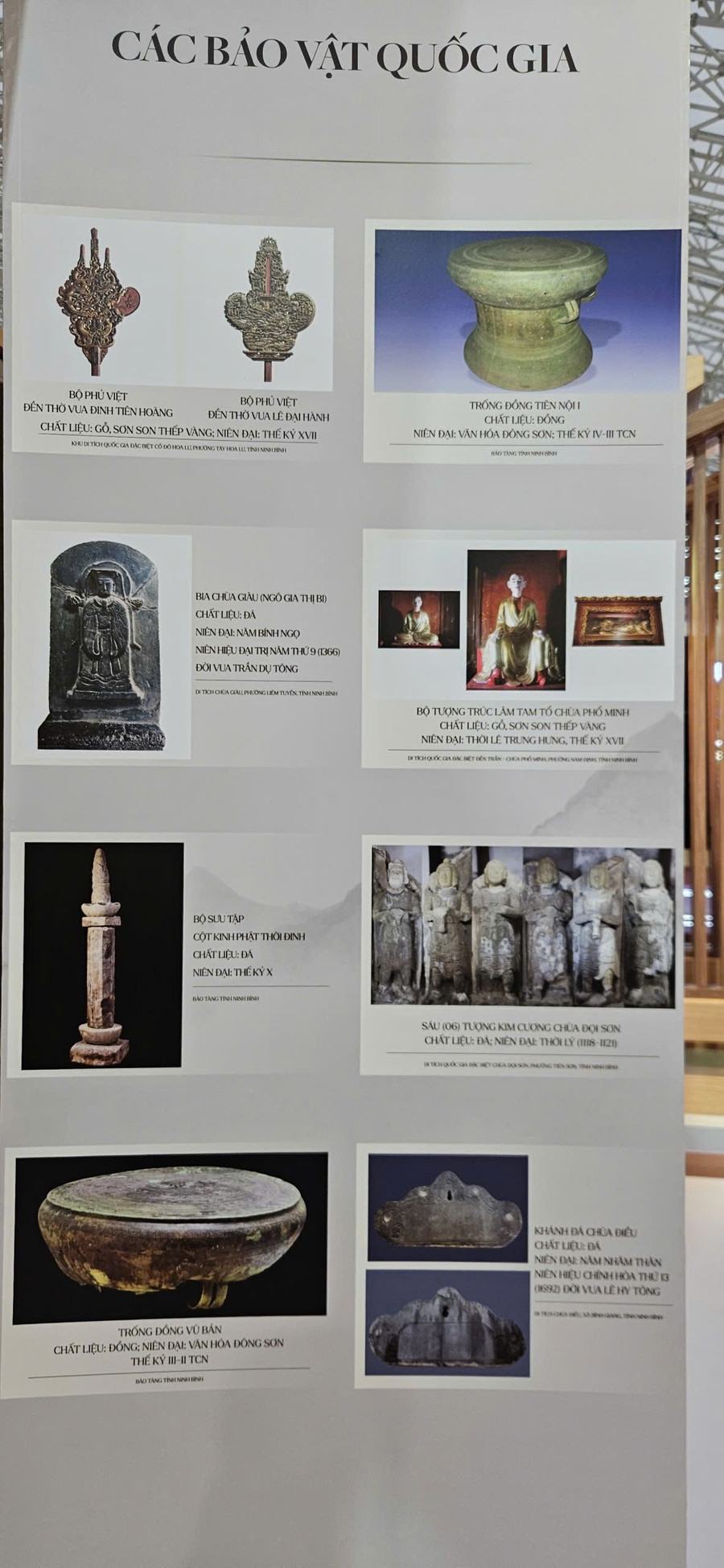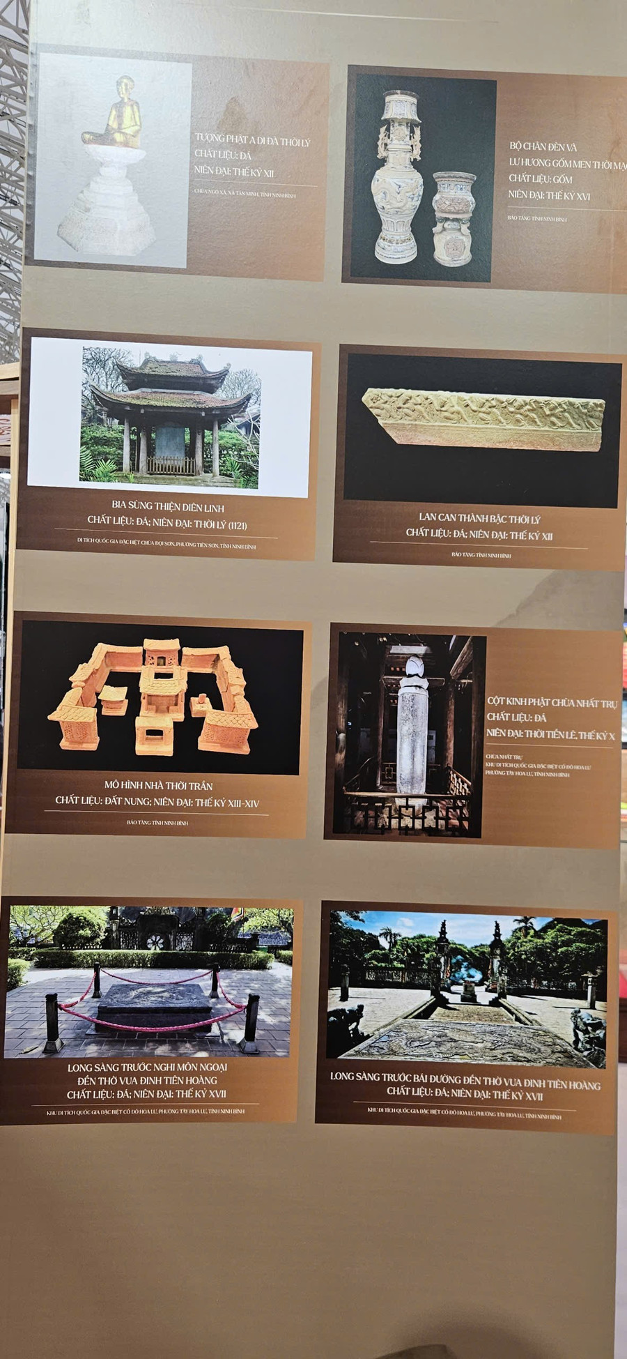 Hình ảnh các bảo vật quốc gia của Ninh Bình được giới thiệu tại triển lãm.