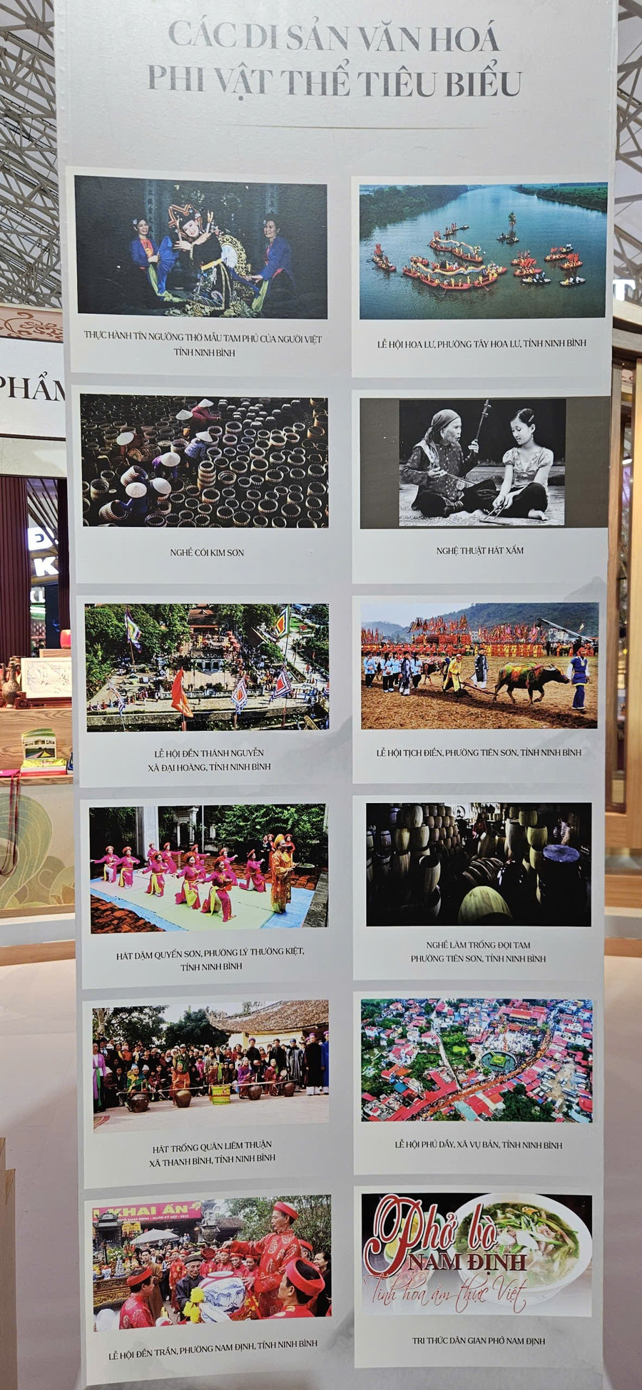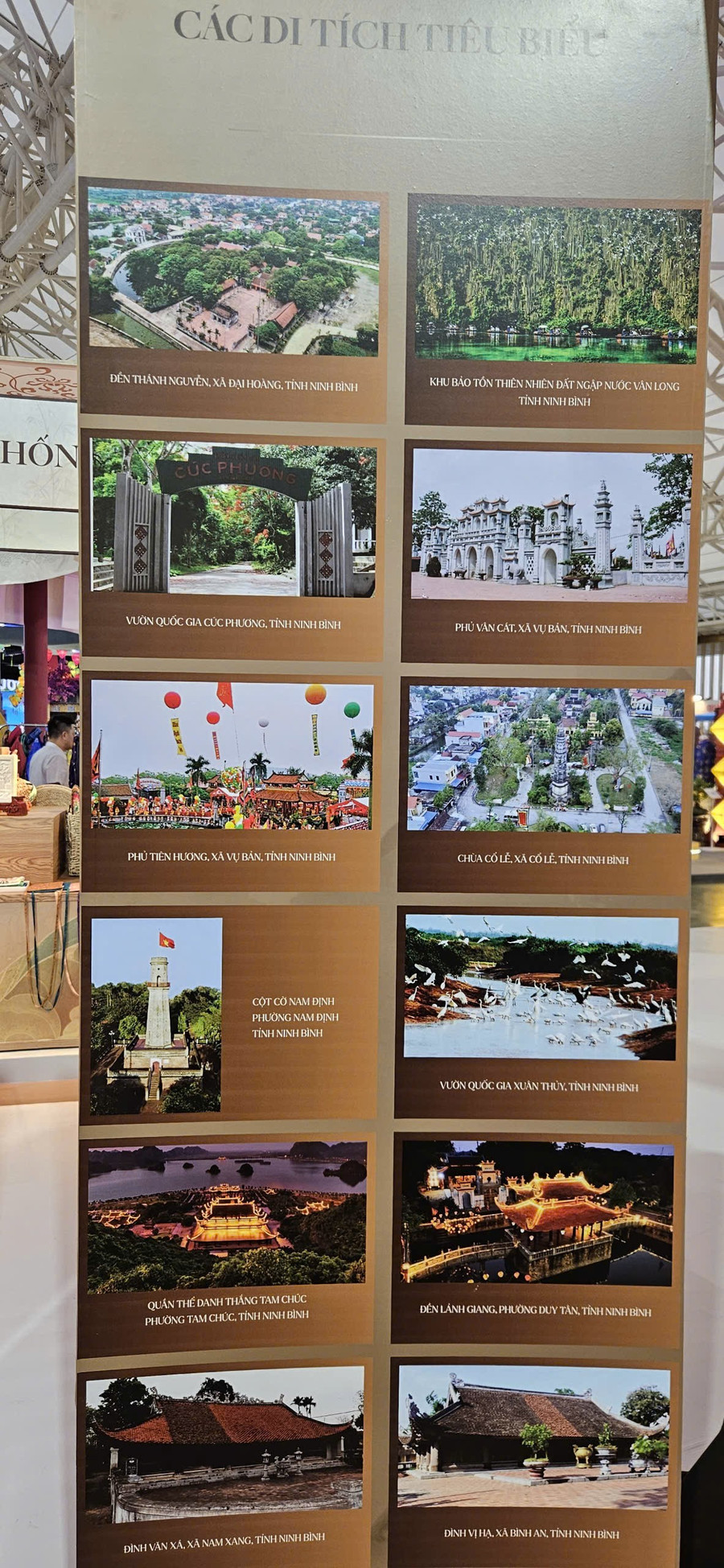 Hình ảnh các di tích, di sản văn hóa tiêu biểu của Ninh Bình hiện diện ở triển lãm để giới thiệu đến du khách.