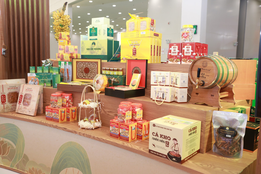 Một số đặc sản truyền thống của quê hương Ninh Bình được trưng bày trong không gian triển lãm.