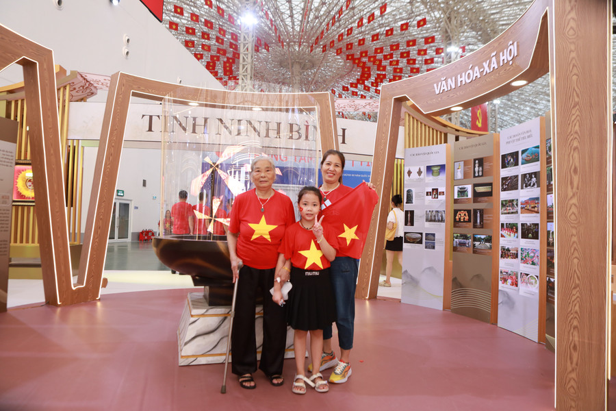 Đưa mẹ già hơn 80 tuổi từ quê hương xã Nam Xang (Ninh Bình) lên Thủ đô chơi nhân dịp 80 năm Quốc khánh, bà Nguyễn Thị Hồng Cảnh trú phường Xuân Đỉnh, Hà Nội tâm sự: “Đến triển lãm, tôi thực sự choáng ngợp bởi quy mô và sự đổi thay của đất nước qua bao thăng trầm của lịch sử. Dưới lá cờ Đảng quang vinh, dân tộc ta đã giành được nhiều thắng lợi to lớn để có được hòa bình, độc lập, tự do như ngày nay”.