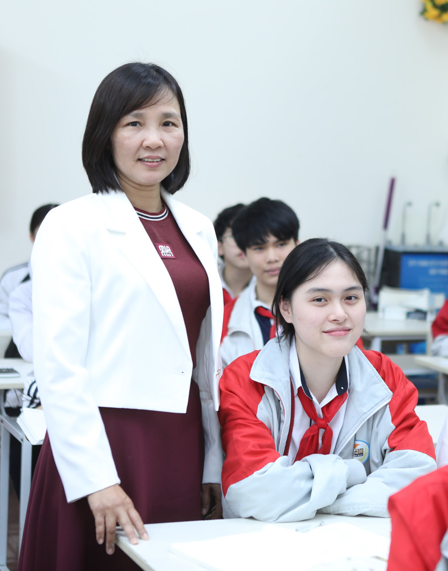 Cô trò lớp 9 Trường THCS Trần Đăng Ninh, phường Nam Định, tỉnh Ninh Bình trong giờ học Toán. Ảnh: Đình Tuệ.