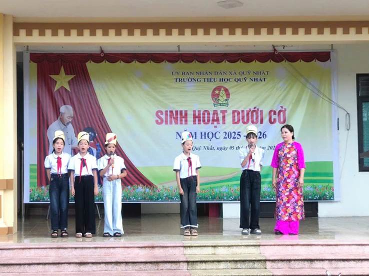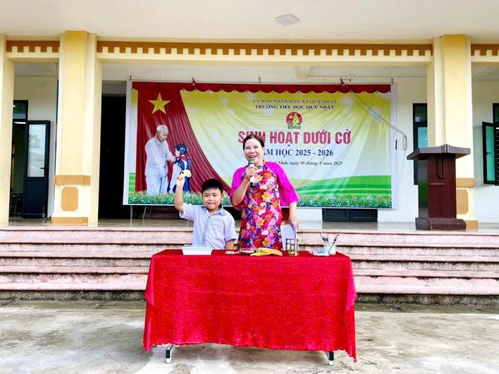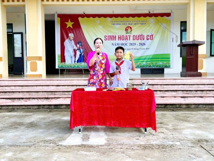 🌞Sáng nay thứ Hai ngày 15 tháng 9 năm 2025, khi ánh nắng ban mai khẽ rải vàng trên những tán lá, tiếng trống trường rộn rã vang lên, mở đầu cho một tuần học mới. Khoảnh khắc ấy, các thầy cô giáo và 492 học sinh Trường Tiểu học Quỹ Nhất lại cùng nhau bước vào một hoạt động quen thuộc nhưng luôn đầy cảm xúc trong tiết sinh hoạt dưới cờ với chủ đề “Đồ dùng học tập”.