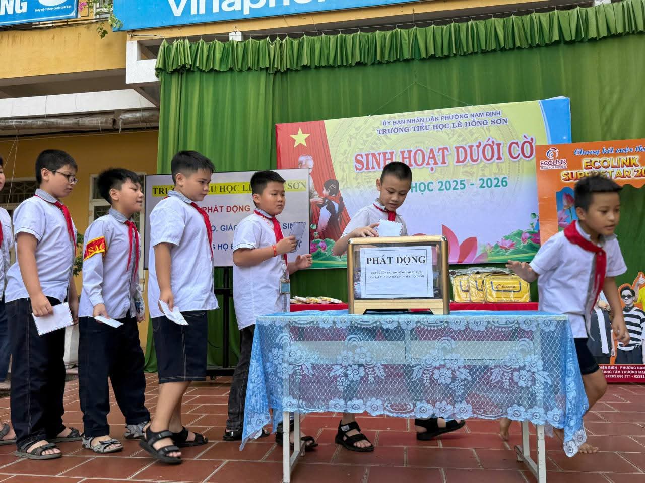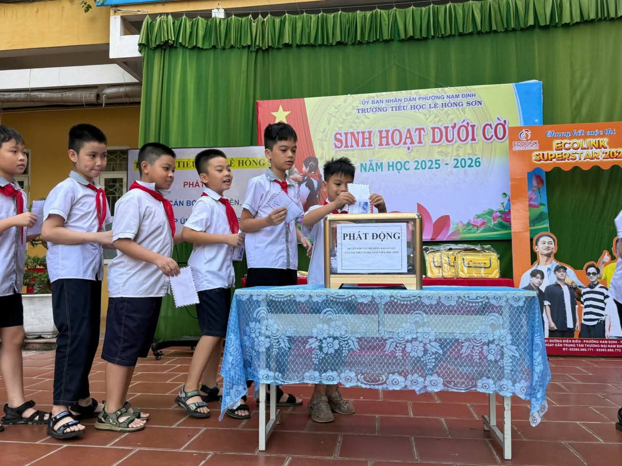 Thầy, trò Trường Tiểu học Lê Hồng Sơn, Phường Nam Định phát động ủng hộ đồng bào vùng lũ – chung tay khắc phục hậu quả cơn bão số 10 gây ra