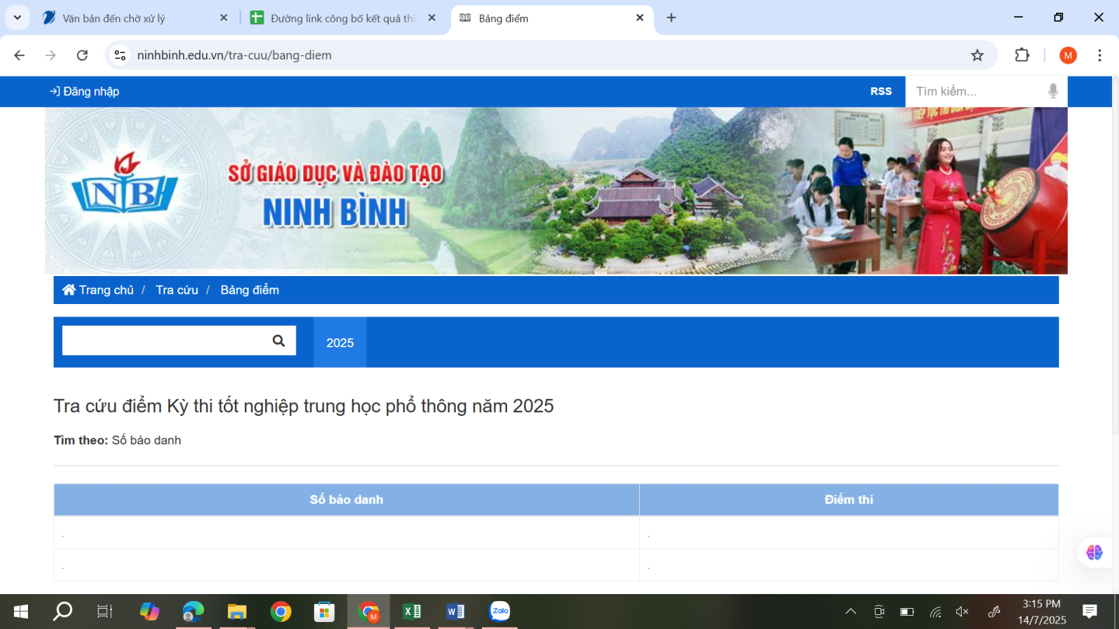 2. Địa chỉ thứ hai: http://diemtnthpt.ninhbinh.edu.vn