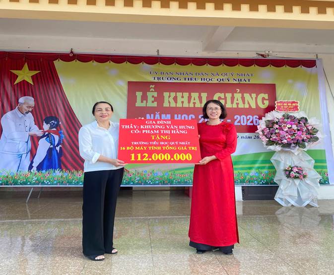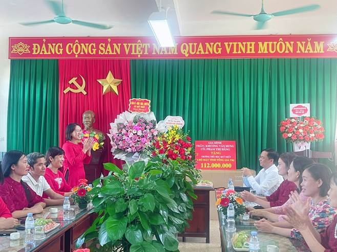 Gia đình thầy Khương Văn Hưng và cô Phạm Thị Hằng tặng 16 bộ máy