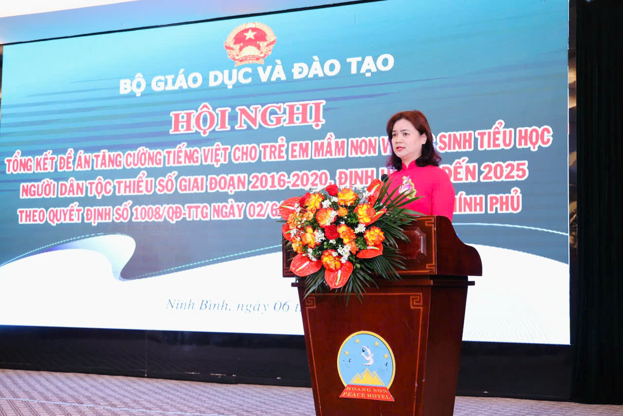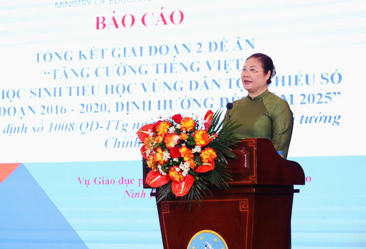 Báo cáo tại hội nghị, Phó Vụ trưởng Vụ Giáo dục Mầm non Cù Thị Thuỷ cho biết: Đề án tăng cường tiếng Việt cho trẻ em mầm non và học sinh tiểu học vùng dân tộc thiểu số giai đoạn 2016 – 2020, định hướng năm 2025 được triển khai theo 2 giai đoạn.