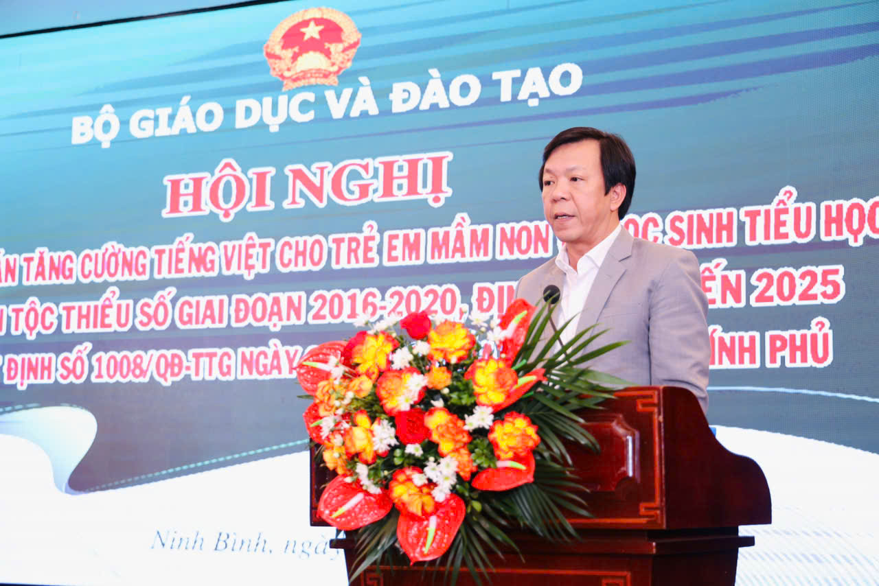 Ngày 6/11, tại Ninh Bình, Thứ trưởng Thường trực Bộ Giáo dục và Đào tạo (GDĐT) Phạm Ngọc Thưởng chủ trì hội nghị tổng kết Đề án tăng cường tiếng Việt cho trẻ em mầm non và học sinh tiểu học vùng dân tộc thiểu số (DTTS) giai đoạn 2016 – 2020, định hướng năm 2025 (theo Quyết định số 1008/QĐ-TTG ngày 02/6/2016 của Thủ tướng Chính phủ).
