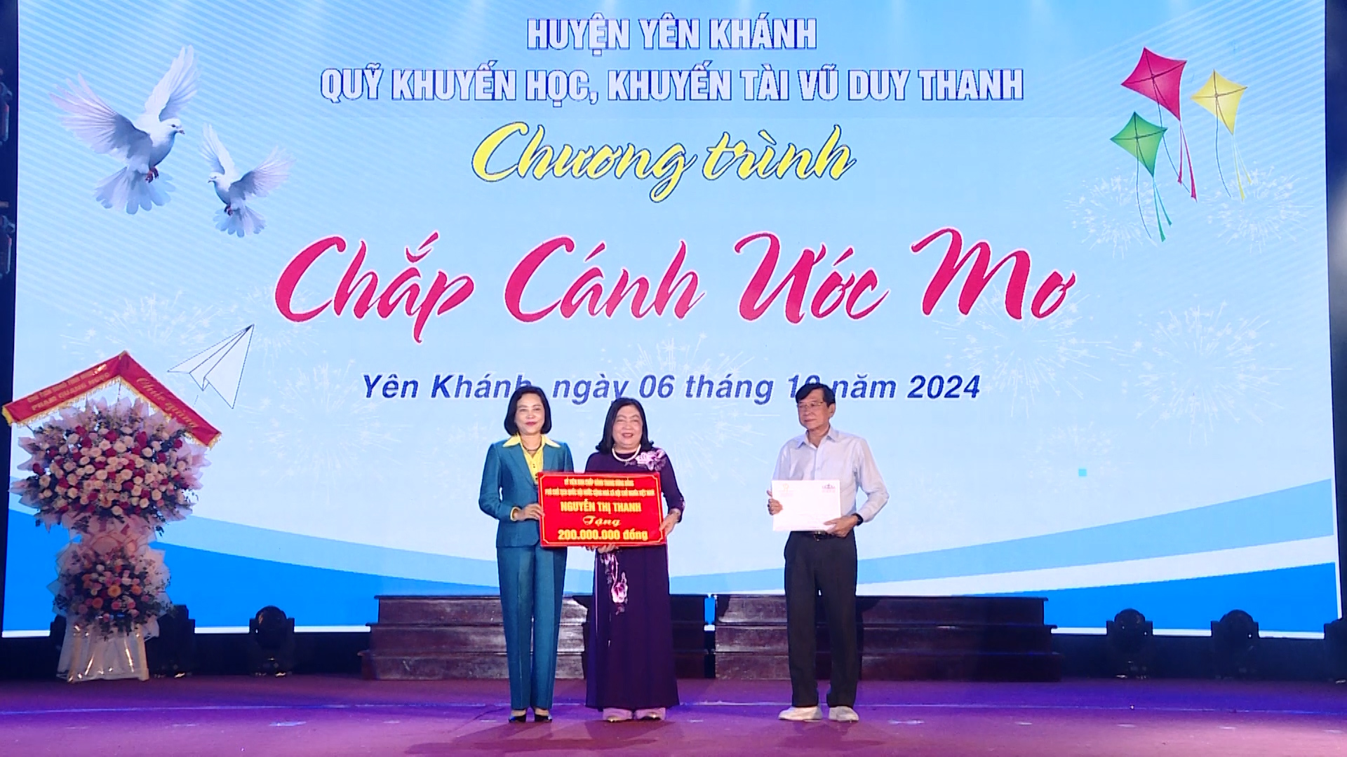 Sáng 6/10, Quỹ khuyến học, khuyến tài Vũ Duy Thanh, huyện Yên Khánh tổ chức Cchương trình “Chắp cánh ước mơ” lần thứ 13, khen thưởng các em học sinh, sinh viên đạt thành tích xuất sắc năm học 2023-2024.