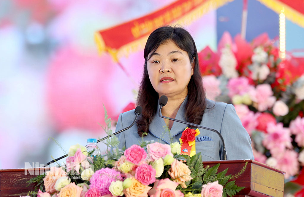 Phát biểu tại lễ kỷ niệm, đồng chí Phó Chủ tịch UBND tỉnh Hà Lan Anh đã ghi nhận và biểu dương những kết quả, thành tích mà các thế hệ thầy và trò nhà trường đã đạt được trong thời gian qua. Phát huy truyền thống 60 năm vẻ vang và đứng trước những yêu cầu của giai đoạn mới, đồng chí Phó Chủ tịch UBND tỉnh yêu cầu tập thể sư phạm Trường THPT Gia Viễn B tập trung thực hiện tốt một số nhiệm vụ trọng tâm: Tiếp tục quán triệt sâu sắc và triển khai thực hiện sáng tạo, hiệu quả các chủ trương, đường lối của Đảng, chính sách, pháp luật của Nhà nước về giáo dục, trọng tâm là Nghị quyết 29 của Ban Chấp hành Trung ương Đảng khoá XI “Về đổi mới căn bản, toàn diện giáo dục và đào tạo, đáp ứng yêu cầu công nghiệp hoá, hiện đại hoá trong điều kiện kinh tế thị trường định hướng xã hội chủ nghĩa và hội nhập quốc tế”, Kết luận số 91 của Bộ Chính trị tiếp tục thực hiện Nghị quyết số 29, đặc biệt là triển khai thực hiện hiệu quả Nghị quyết số 71 của Bộ Chính trị về đột phá phát triển giáo dục và đào tạo…; Không ngừng đổi mới tư duy quản lý, quản trị nhà trường theo hướng hiện đại, dân chủ, chuyên nghiệp và xây dựng tập thể sư phạm đoàn kết, vững mạnh, môi trường giáo dục thực sự “Kỷ cương – Tình thương – Trách nhiệm”…; Đặc biệt chăm lo xây dựng và phát triển đội ngũ nhà giáo, cán bộ quản lý, mỗi thầy, cô giáo phải thực sự là một tấm gương sáng về đạo đức, về tinh thần tự học, tự rèn luyện, đổi mới sáng tạo, là người truyền cảm hứng, thắp lên ngọn lửa đam mê, khát vọng cống hiến cho học sinh; Tập trung thực hiện mục tiêu giáo dục toàn diện, cùng với việc nâng cao chất lượng giáo dục văn hóa, cần đặc biệt coi trọng giáo dục đạo đức, lý tưởng sống, kỹ năng sống, kỹ năng ngoại ngữ, tin học để đào tạo ra những thế hệ học sinh không chỉ giỏi về kiến thức, mà còn giàu về nhân cách, có bản lĩnh, tư duy phản biện, khả năng thích ứng và khát vọng vươn lên, làm chủ tương lai, cống hiến cho quê hương, đất nước; Đẩy mạnh chuyển đổi số trong dạy và học; tăng cường đầu tư, hiện đại hóa cơ sở vật chất, trang thiết bị dạy học, phấn đấu xây dựng Trường THPT Gia Viễn B sớm đạt chuẩn quốc gia mức độ 2, trở thành một trong những trường THPT hàng đầu của tỉnh; Yêu cầu Đảng ủy, HĐND, UBND xã Gia Vân, Sở Giáo dục và Đào tạo, cùng các sở, ban, ngành, đoàn thể của tỉnh tiếp tục quan tâm, tạo điều kiện thuận lợi nhất để Trường THPT Gia Viễn B hoàn thành xuất sắc nhiệm vụ được giao.