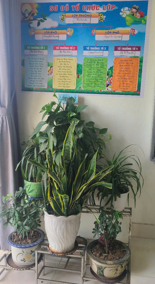 Không khí chuẩn bị còn thể hiện qua sự chăm chút từng góc lớp. Bàn ghế được sắp xếp gọn gàng, cửa sổ lau chùi sạch sẽ, những chậu cây tươi tắn được đặt ở góc phòng. Mỗi bạn đều ý thức giữ gìn vệ sinh chung, làm cho không gian học tập thêm khang trang, sạch đẹp.