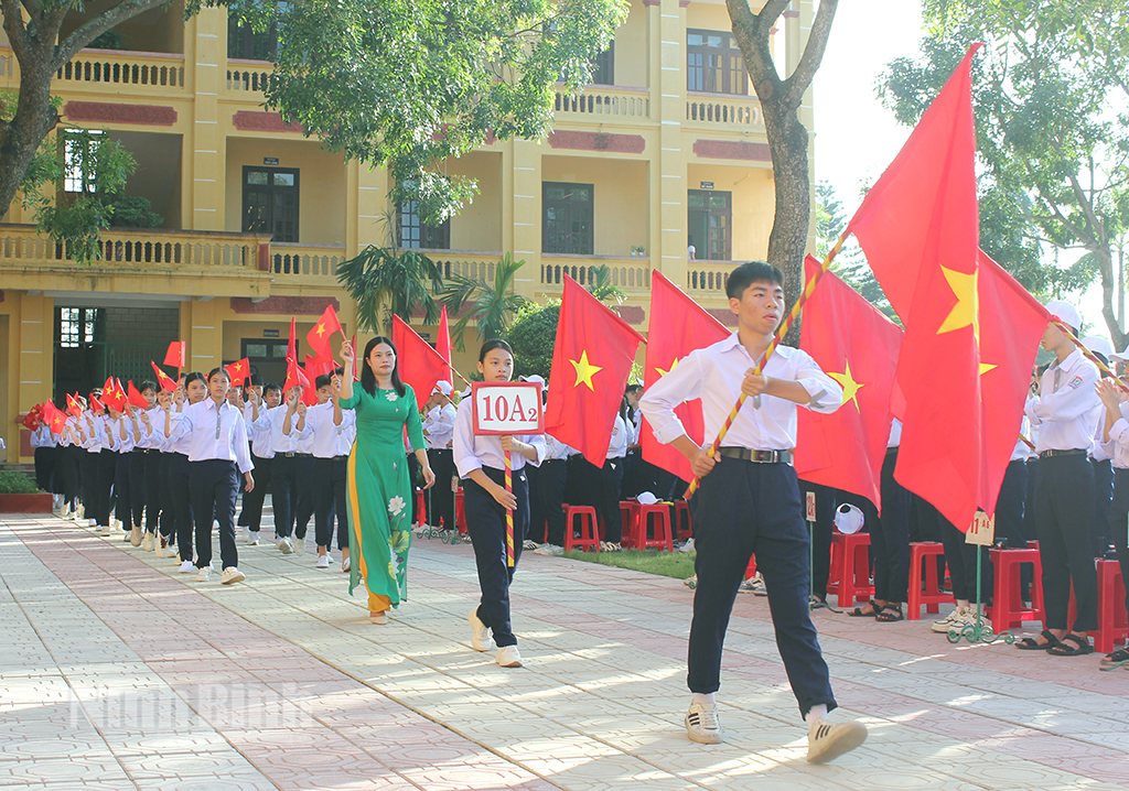 Các em học sinh Trường THPT Tống Văn Trân dự Lễ khai giảng.