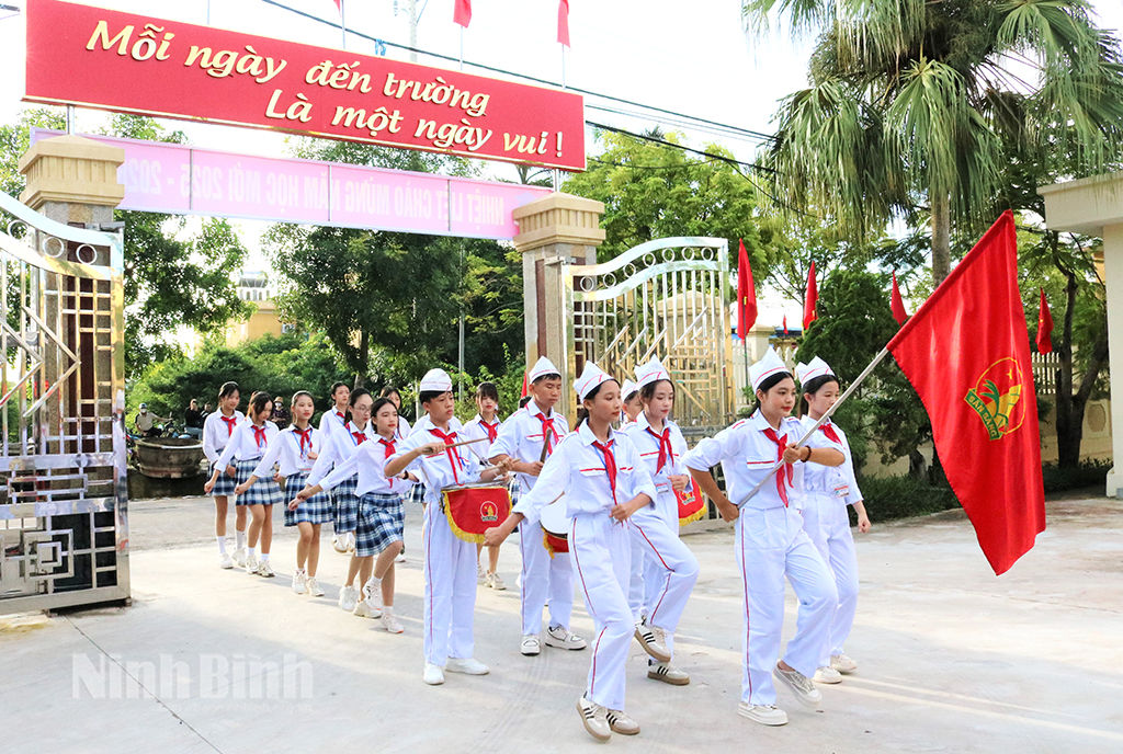 Lễ khai giảng năm học mới 2025-2026 của thầy và trò Trường THCS Hồi Ninh (xã Chất Bình). Ảnh: Anh Tuấn