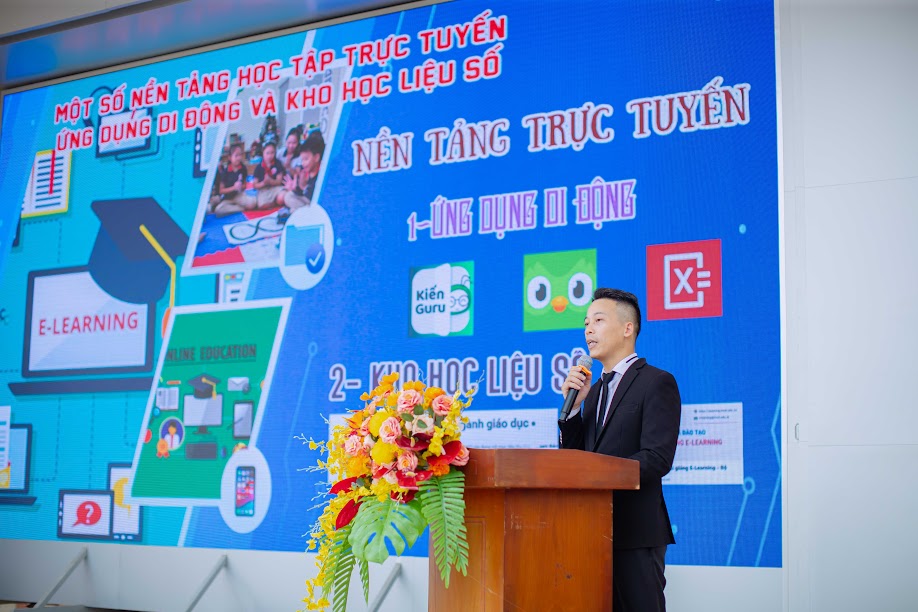 Một trong những nội dung quan trọng, mang ý nghĩa thiết thực và cần thiết tại buổi lễ, Thầy giáo Vũ Văn Bền – Phó Hiệu trưởng Trường Tiểu học Trần Nhân Tông giới thiệu và hướng dẫn sử dụng các nền tảng học tập trực tuyến, ứng dụng di động và kho học liệu số, góp phần mang tri thức đến gần hơn với người học trong thời đại công nghệ.