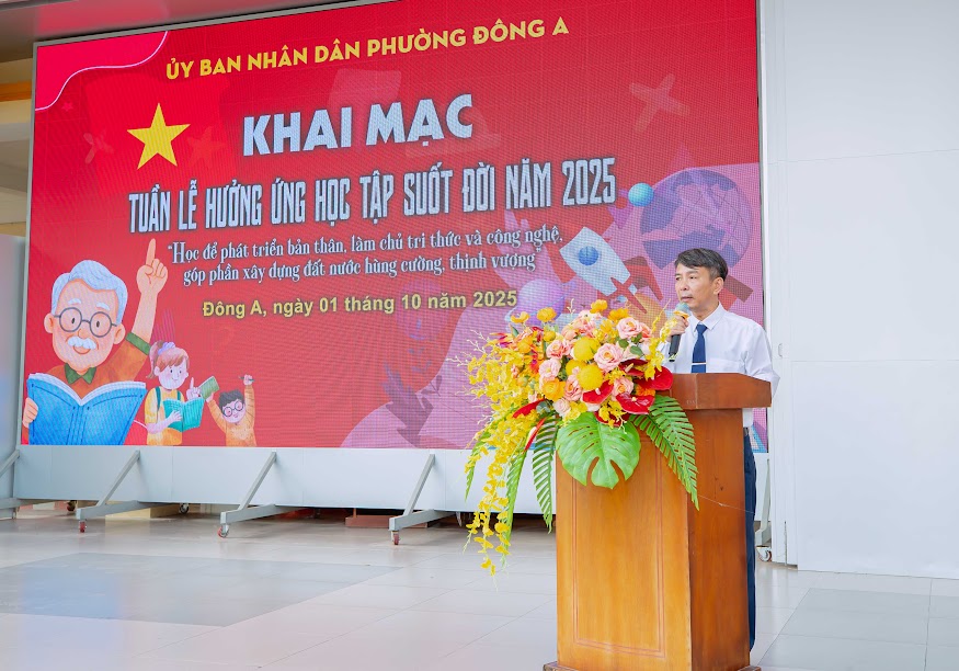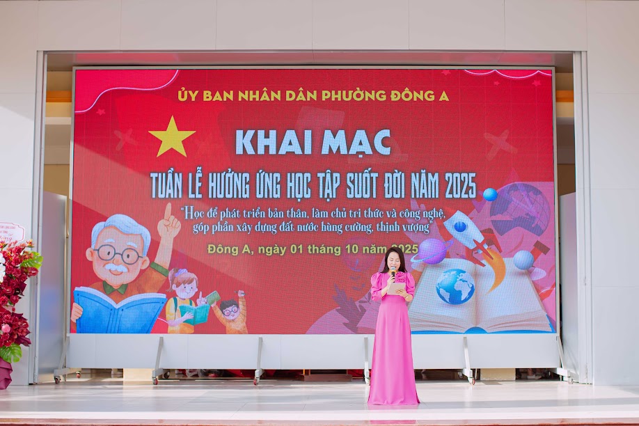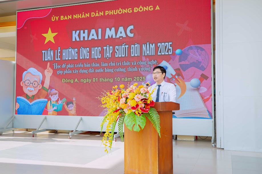 Sáng 01/10/2025, Ủy ban nhân dân phường Đông A long trọng tổ chức Lễ khai mạc Tuần lễ hưởng ứng Học tập suốt đời năm 2025 với chủ đề “Học để phát triển bản thân, làm chủ tri thức và công nghệ, góp phần xây dựng đất nước hùng cường, thịnh vượng”.